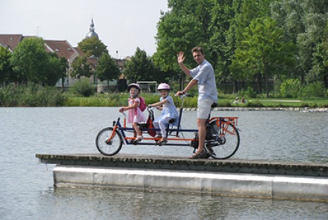 De Onderwaterfiets XL is de lange versie van de ‘gewone’ Onderwaterfiets waarmee niemand onopgemerkt voorbij zal fietsen. Er kunnen twee kinderen (ideale leeftijd tussen 3,5 en 7 jaar) voorop terwijl de ouder achter stuurt en het overzicht heeft.